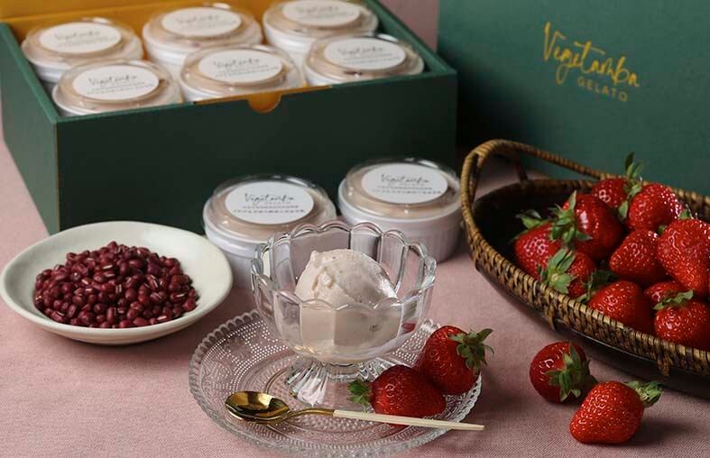 イチゴ&丹波大納言小豆ジェラート6個にプラスしてお任せジェラート6個、合計12個セットでお送り致します。